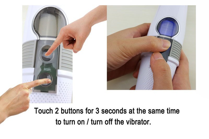 -Nhấn nút tròn trên thân máy 3 giây để khởi động máy mát xa, nhấn tiếp 2 nút tròn trên thân máy để điều chỉnh chế độ rung theo ý thích.