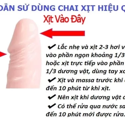 - Sử dụng 2 – 3 hơi xịt trở lên, không quá 10 hơi, xịt vào đầu và trục dương vật trước khi giao hợp.